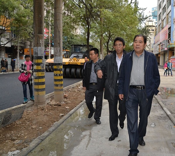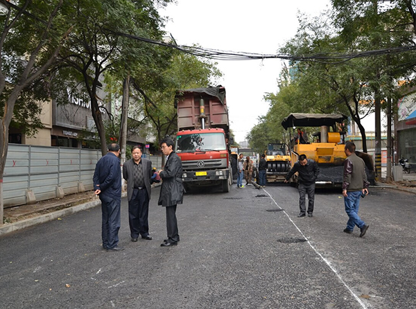 下圖為:咸陽市城建局韓保鋒局長、咸陽市市政工程管理處楊偉生主任、咸陽市建筑安裝工程總公司趙拓總經(jīng)理等在樂育路施工現(xiàn)場檢查、指導工作。